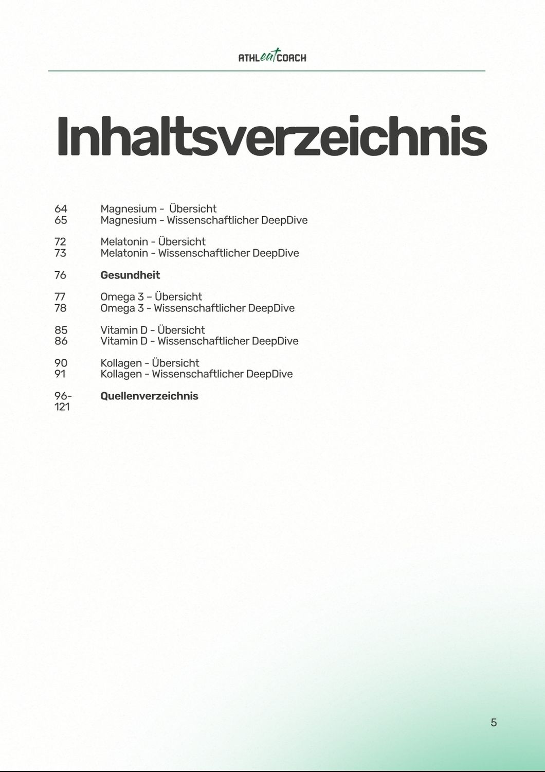 Jedes Supplement enthält eine kompakte Übersichtsseite mit den wichtigsten Infos zu Wirkung, Einnahme und relevanten Fakten. Ergänzend dazu gibt es ausführliche Deep-Dives, die häufige Fragen – insbesondere aus der Grauzone – wissenschaftlich fundiert beantworten.